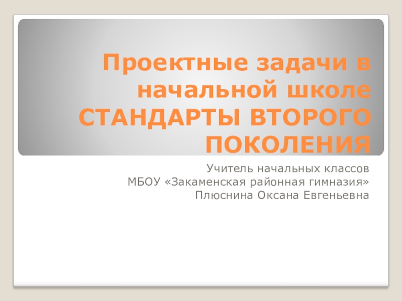 Слайд 1Проектные задачи в начальной школе СТАНДАРТЫ ВТОРОГО ПОКОЛЕНИЯ