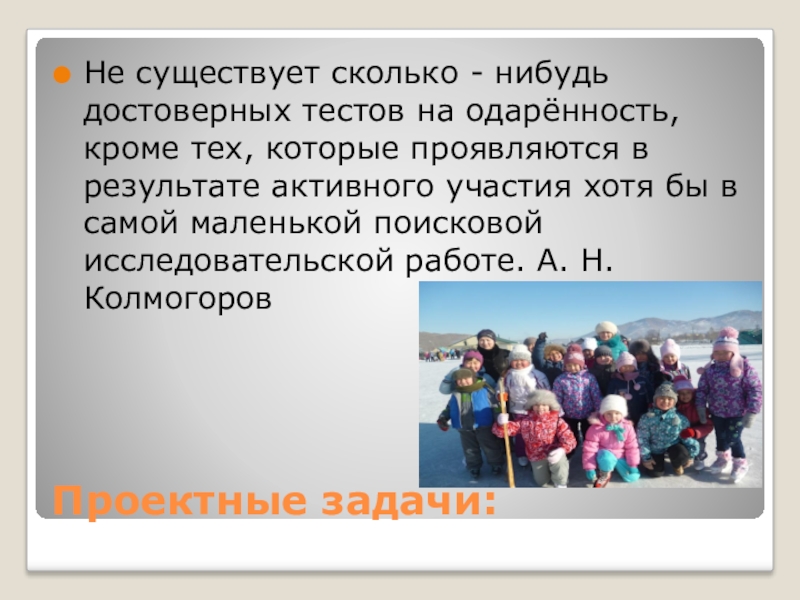 тех, которые проявляются в результате активного участия хотя бы в самой маленькой поисковой исследовательской работе. А. Н. Колмогоров