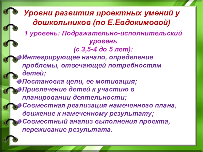 Уровни развития проектных умений у дошкольников (по Е.Евдокимовой)