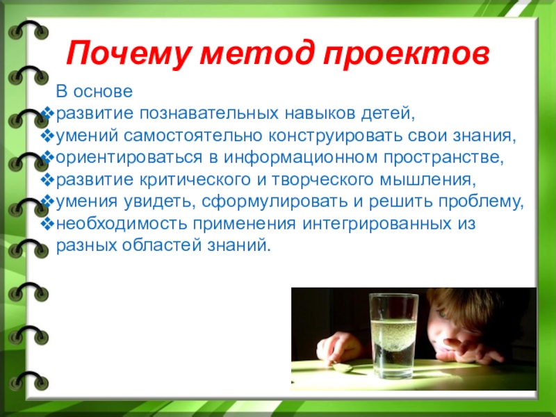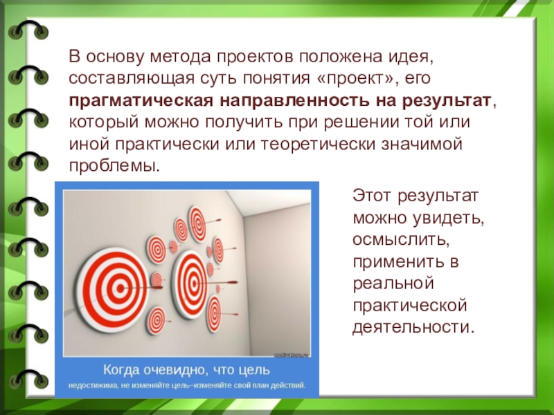 Слайд 8В основу метода проектов положена идея, составляющая суть понятия «проект», его