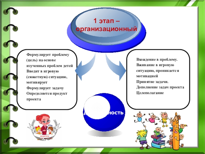 Интегрирующее начало, определение проблемы, отвечающей потребностям детей;