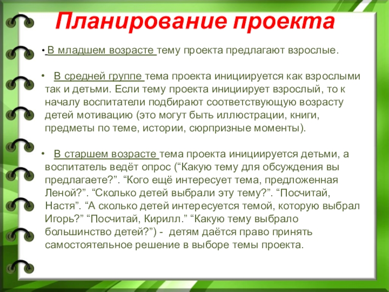 составлении совместного плана работы с детьми над проектом поддерживать детскую инициативу.