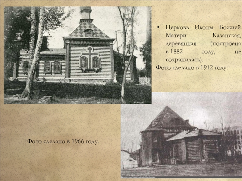 Слайд 18Церковь Иконы Божией Матери Казанская, деревянная (построена в 1882 году, не сохранилась).