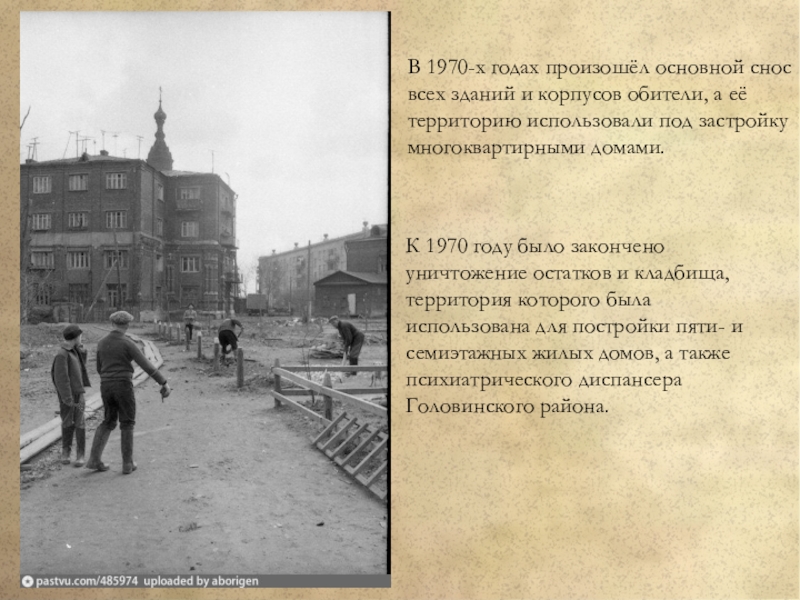 Слайд 24В 1970-х годах произошёл основной снос всех зданий и корпусов обители,