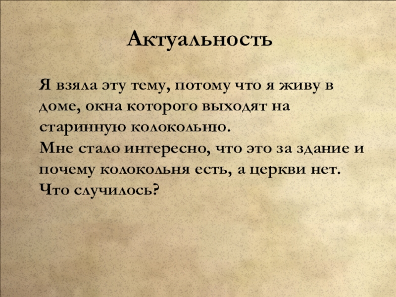 Необходимо выяснить, что же было на месте моего дома, рядом с моей любимой колокольней.