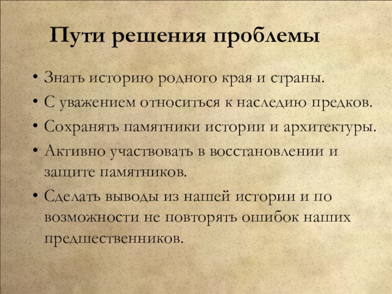 Сделать выводы из нашей истории и по возможности не повторять ошибок наших предшественников.