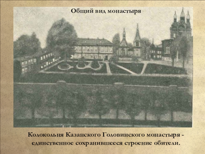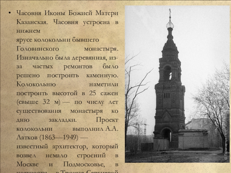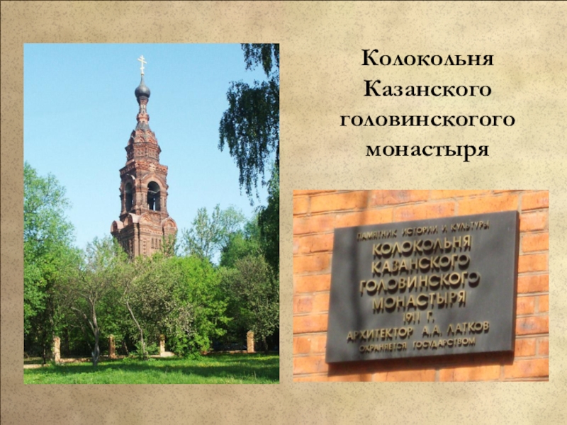Слайд 10Колокольня Казанского Головинского монастыря - единственное сохранившееся строение обители.