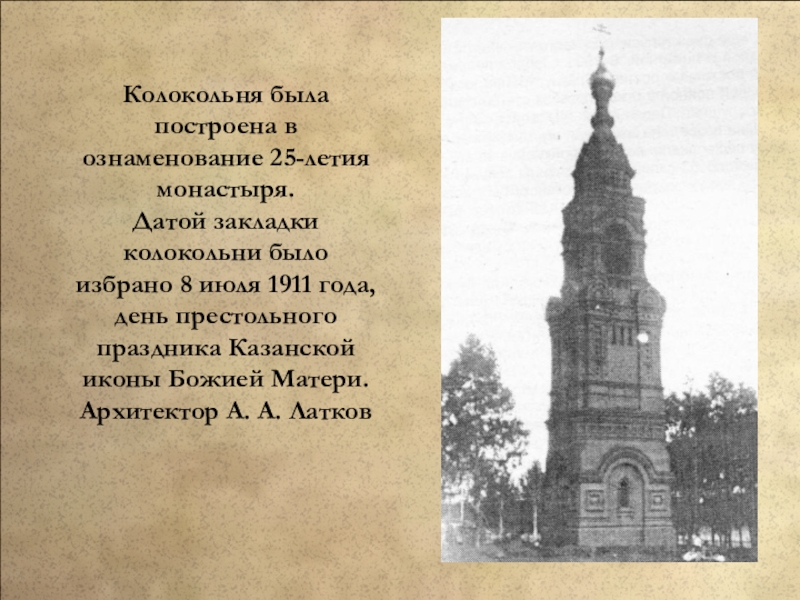 Слайд 9Колокольня была построена в ознаменование 25-летия монастыря.