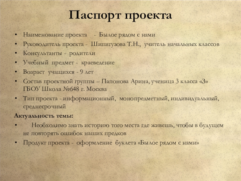 Продукт проекта - оформление буклета «Былое рядом с нами»