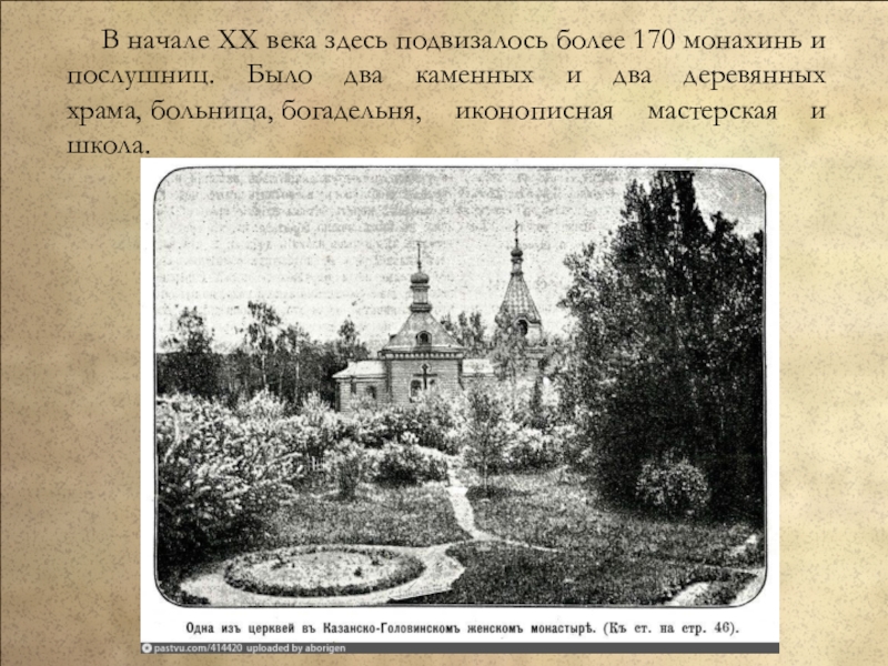 Слайд 15В начале XX века здесь подвизалось более 170 монахинь и послушниц.
