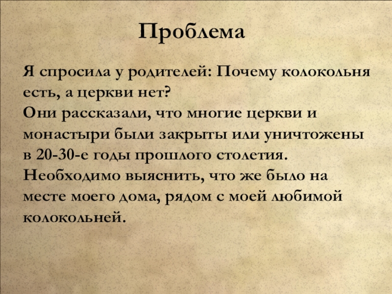 Я спросила у родителей: Почему колокольня есть, а церкви нет?