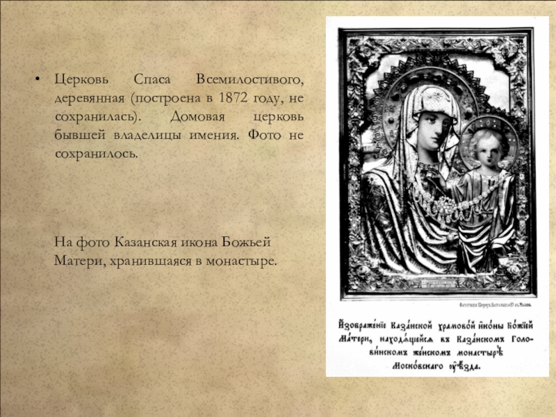 Слайд 19На фото Казанская икона Божьей Матери, хранившаяся в монастыре.