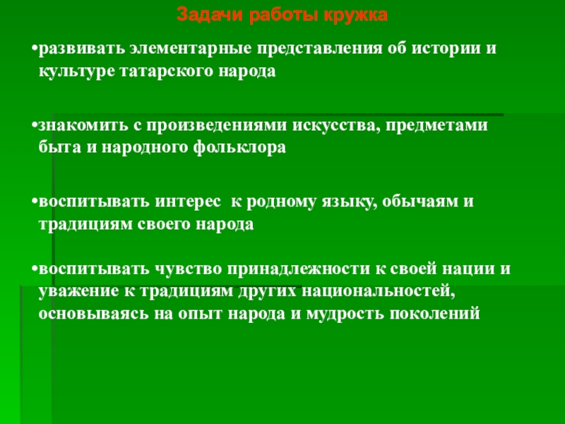 «Национальные традиции татарского народа» - народные традиции, обычаи, праздники, обряды, народные игры, особенности национальной одежды.