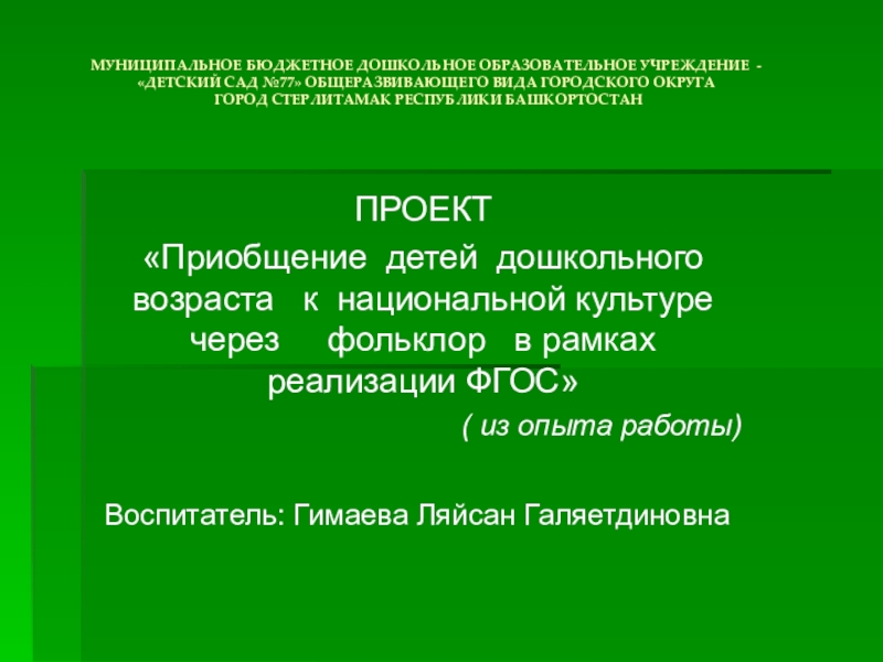 «Приобщение детей дошкольного возраста к национальной культуре через фольклор в рамках реализации ФГОС»