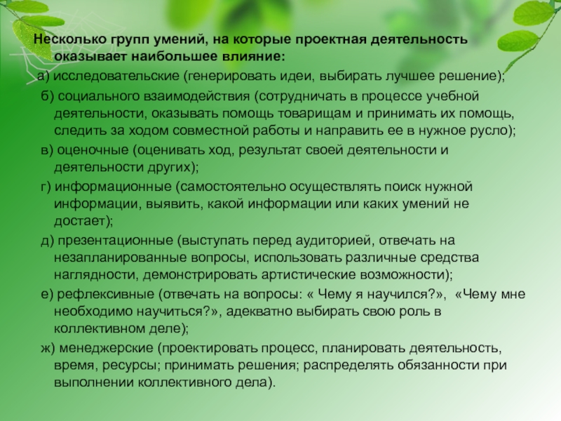 формирование у учащегося важнейших общеучебных умений и навыков (исследовательских, презентационных, оценочных) оказывается вполне управляемым процессом;