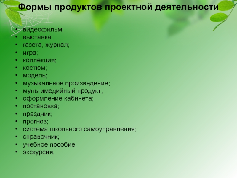 Выполнение проекта начинается с планирования действий по разрешению проблемы, иными словами – с проектирования самого проекта, в частности – с определения вида продукта и формы презентации.