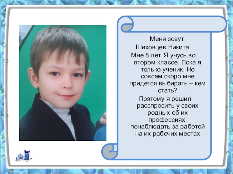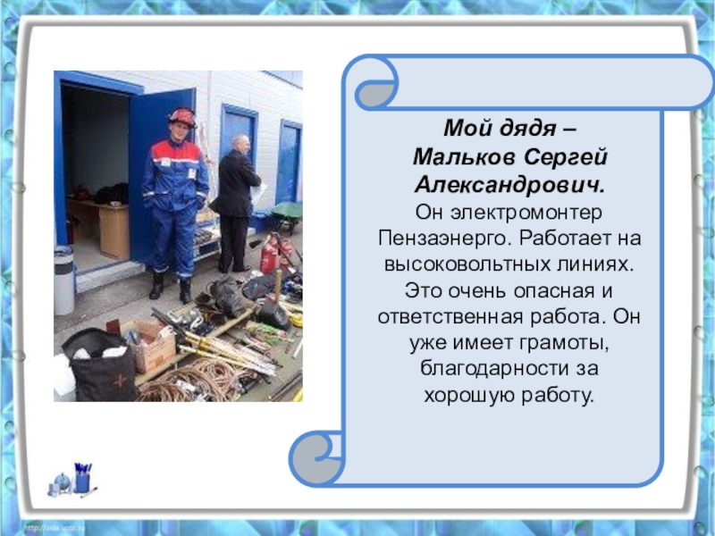 Это сайт презентаций, где можно хранить и обмениваться своими презентациями, докладами, проектами, шаблонами в формате PowerPoint с другими пользователями. Мы помогаем школьникам, студентам, учителям, преподавателям хранить и обмениваться учебными материалами.