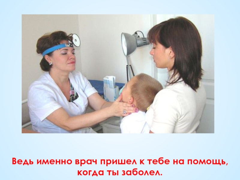 Слайд 21Ведь именно врач пришел к тебе на помощь, когда ты заболел.
