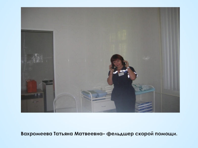 Слайд 17 Вахромеева Татьяна Матвеевна– фельдшер скорой помощи.