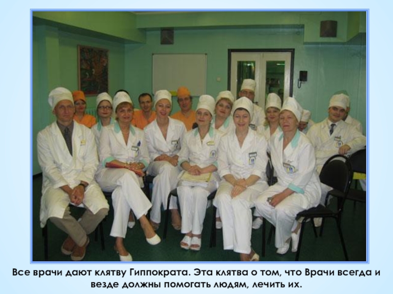 Слайд 3Все врачи дают клятву Гиппократа. Эта клятва о том, что Врачи