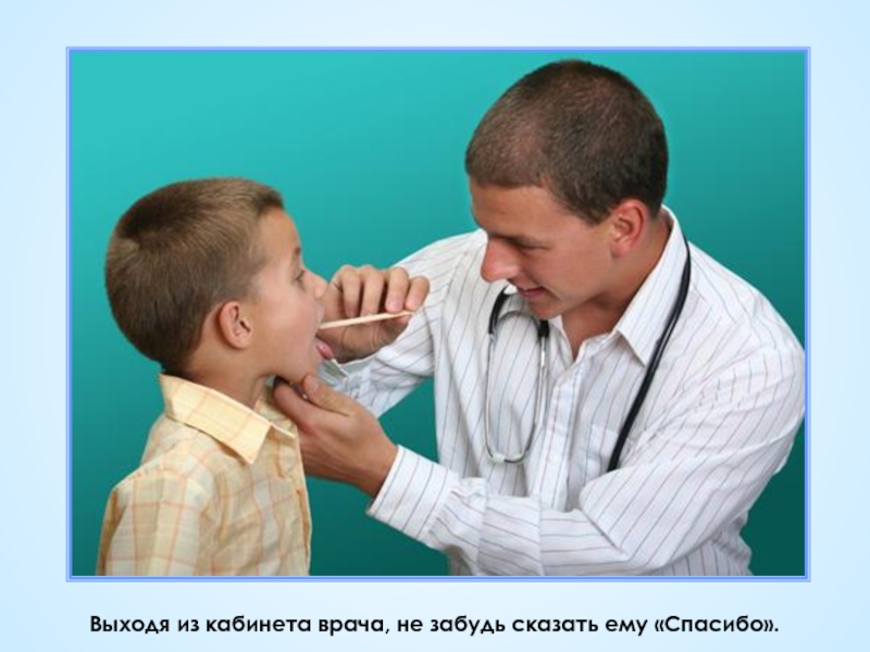 Слайд 20Выходя из кабинета врача, не забудь сказать ему «Спасибо».