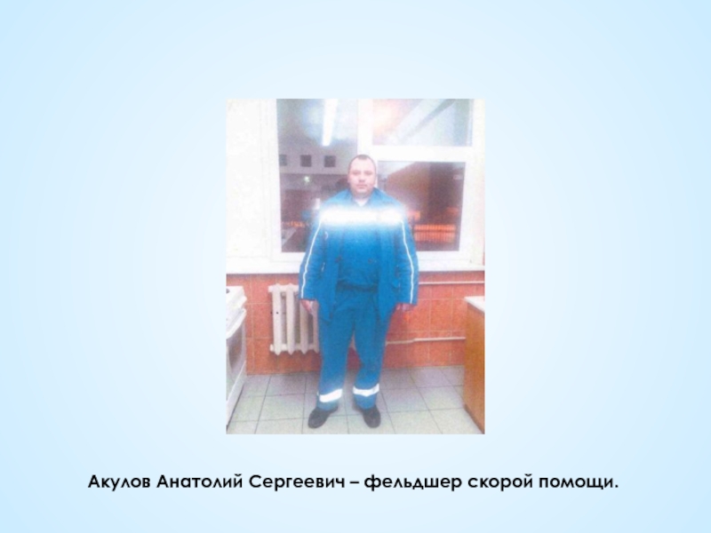 Слайд 18Акулов Анатолий Сергеевич – фельдшер скорой помощи.