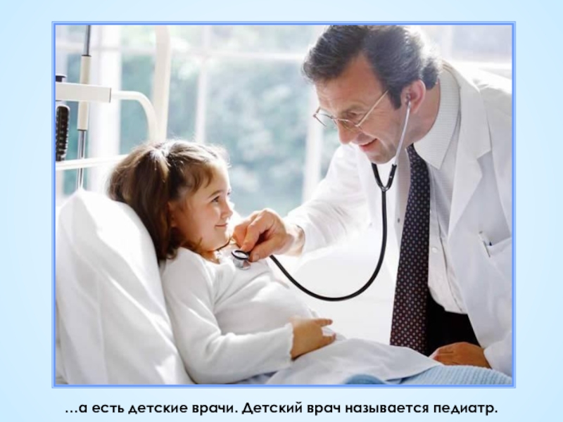 Слайд 9…а есть детские врачи. Детский врач называется педиатр.