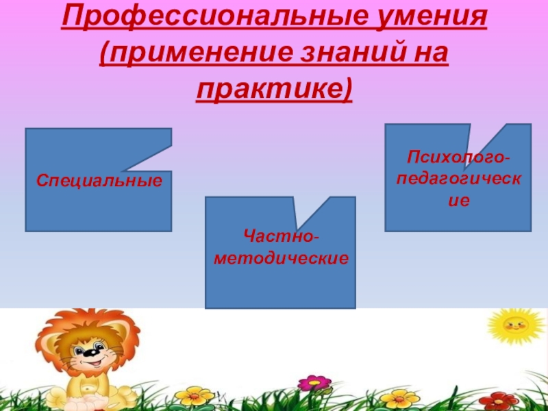 Слайд 12Профессиональные умения (применение знаний на практике)