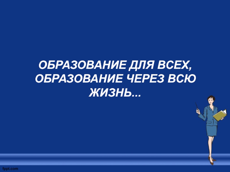 Слайд 7ОБРАЗОВАНИЕ ДЛЯ ВСЕХ, ОБРАЗОВАНИЕ ЧЕРЕЗ ВСЮ ЖИЗНЬ...