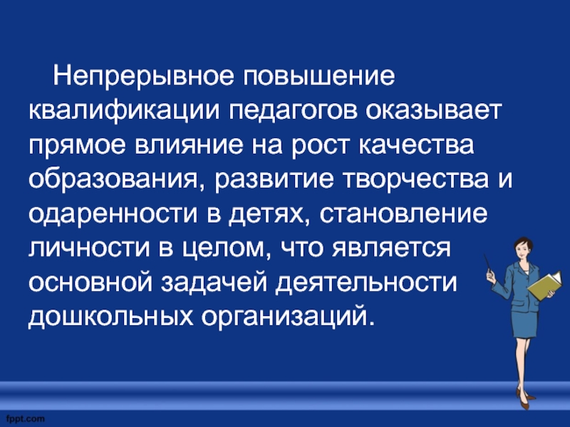 Непрерывное повышение квалификации педагогов оказывает прямое влияние на рост качества образования, развитие творчества и одаренности