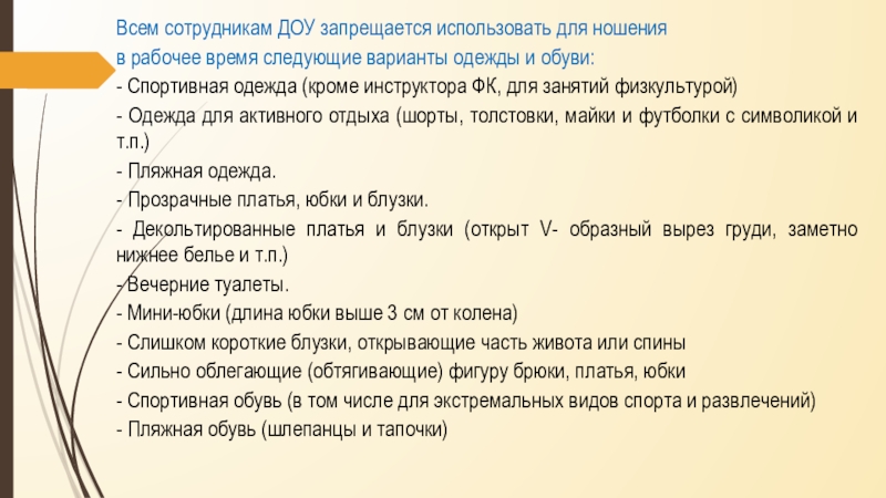 Слайд 6Всем сотрудникам ДОУ запрещается использовать для ношения