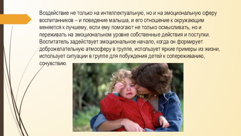 Слайд 25Воздействие не только на интеллектуальную, но и на эмоциональную сферу воспитанников