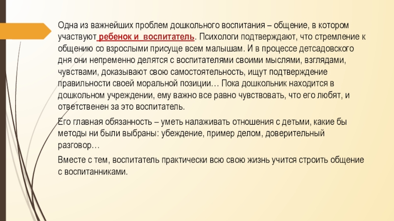 Слайд 10Вся наша работа, вся педагогическая деятельность состоит из общения с детьми,