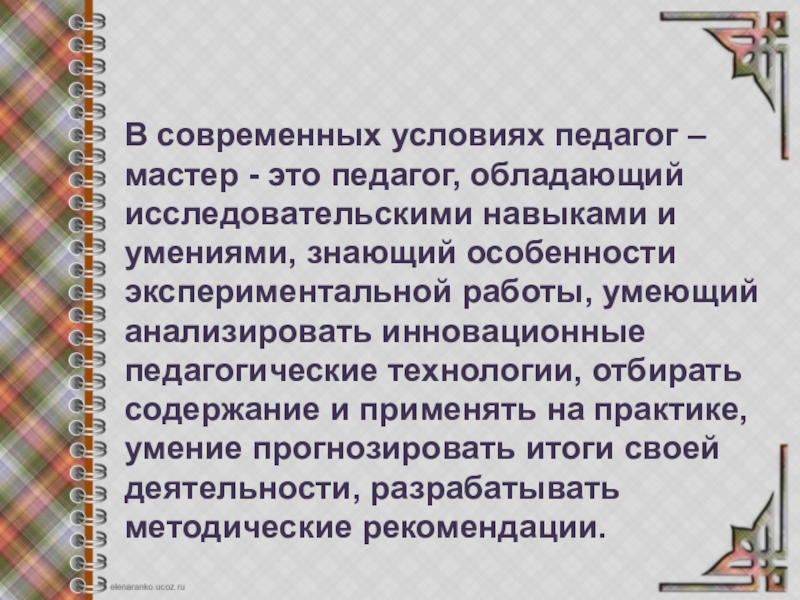 Слайд 11В современных условиях педагог – мастер - это педагог, обладающий исследовательскими