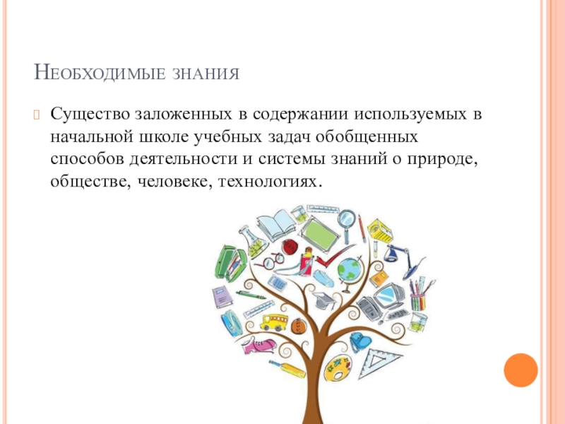 Необходимые знанияСущество заложенных в содержании используемых в начальной школе учебных задач обобщенных способов деятельности и системы знаний