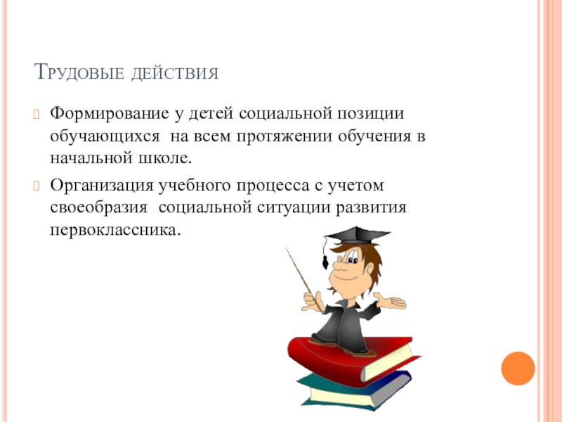 Трудовые действияПроектирование образовательного процесса на основе ФГОС начального общего образования с учетом особенностей социальной ситуации развития первоклассника