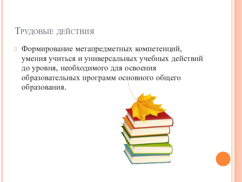 Трудовые действияФормирование метапредметных компетенций, умения учиться и универсальных учебных действий до уровня, необходимого для освоения образовательных программ