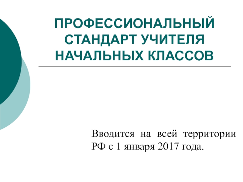 ПРОФЕССИОНАЛЬНЫЙ СТАНДАРТ УЧИТЕЛЯ НАЧАЛЬНЫХ КЛАССОВВводится на всей территории РФ с 1 января 2017 года.