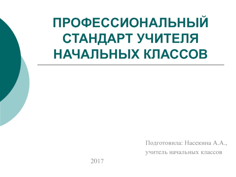 ПРОФЕССИОНАЛЬНЫЙ СТАНДАРТ УЧИТЕЛЯ НАЧАЛЬНЫХ КЛАССОВПодготовила: Насекина А.А.,	 учитель начальных классов 	2017