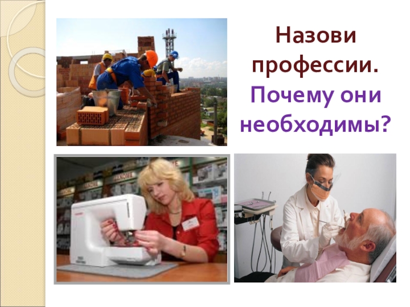 Слайд 3Назови профессии. Почему они необходимы?