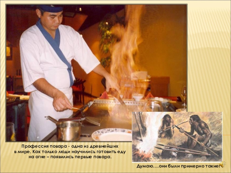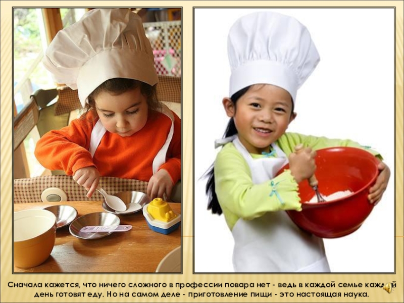 Приготовление пищи начинается с подготовительных операций. Повар перебирает, моет продукты, нарезает и т.д. И затем готовит блюдо в соответствии с рецептурой.