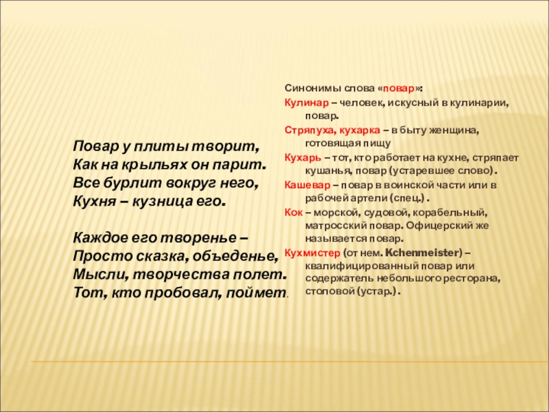 Синонимы слова «повар»:
