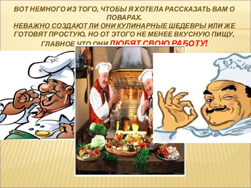 Кулинар – человек, искусный в кулинарии, повар.