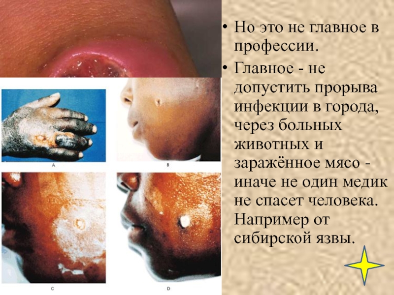 инфекции в города, через больных животных и заражённое мясо - иначе не один медик не спасет человека. Например от сибирской язвы.