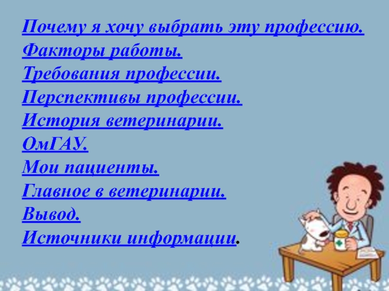 продавец, смотритель в зоопарке, или учитель. Все они очень важны. Но сейчас я хочу рассказать вам о моей любимой профессии – это ветеринар.