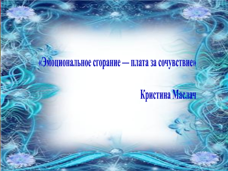 Слайд 2«Эмоциональное сгорание — плата за сочувствие»