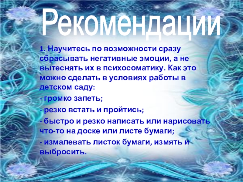 1. Научитесь по возможности сразу сбрасывать негативные эмоции, а не вытеснять