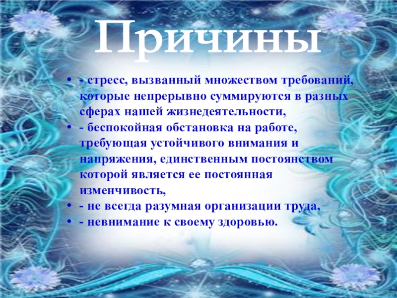1. Напряжение – его создают повышенная ответственность, трудный контингент,