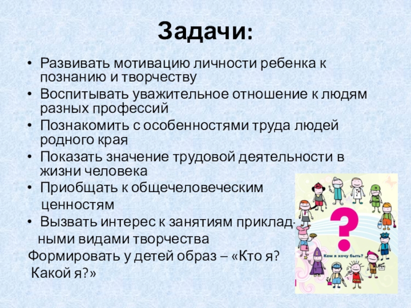 -развитие творческих способностей детей в процессе знакомства с профессиями