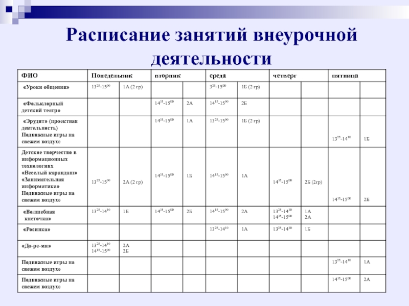 Слайд 52Расписание занятий внеурочной деятельности